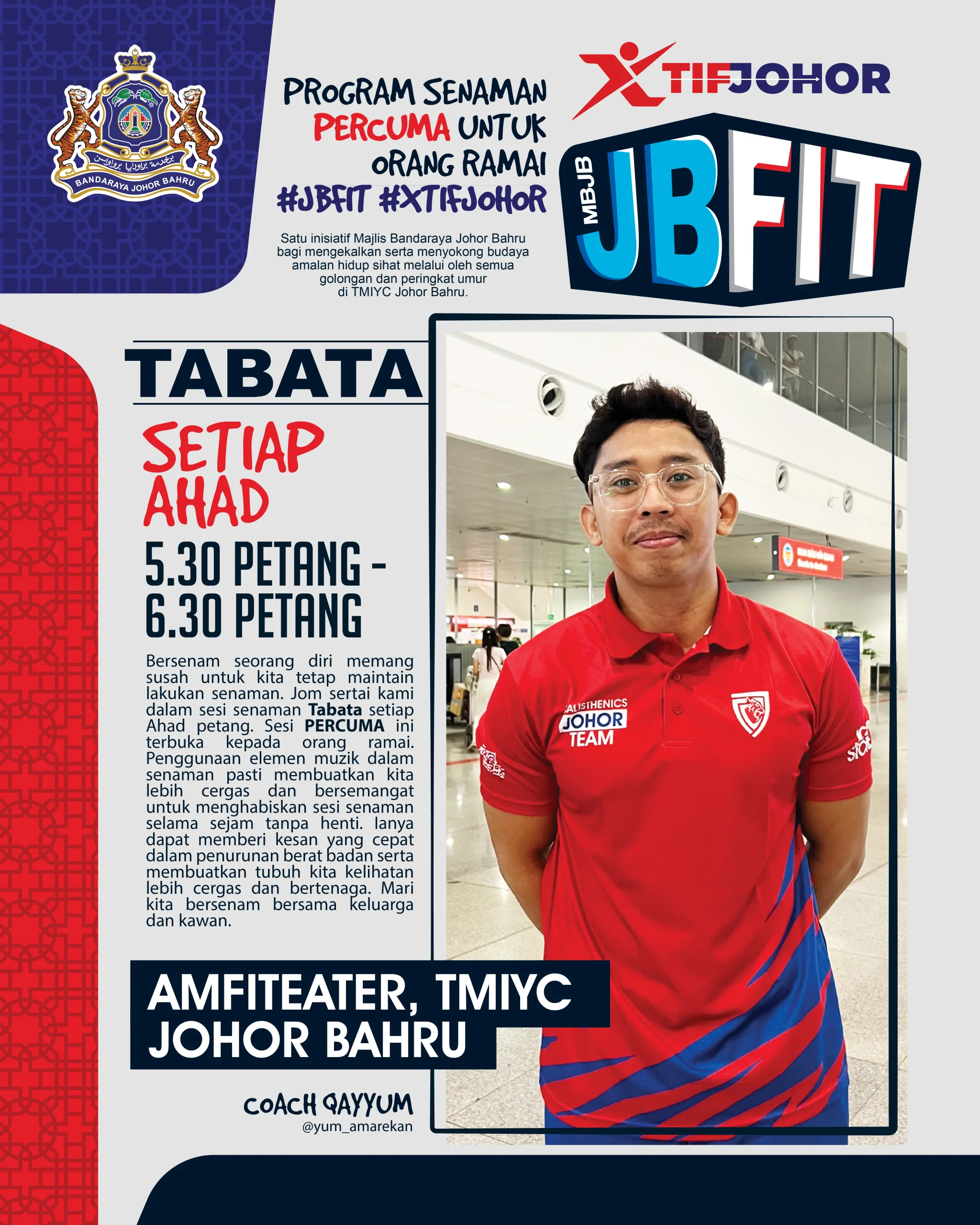 Satu inisiatif Majlis Bandaraya Johor Bahru (MBJB) bagi mengekalkan serta menyokong budaya amalan hidup sihat melalui senaman secara mingguan di taman awam