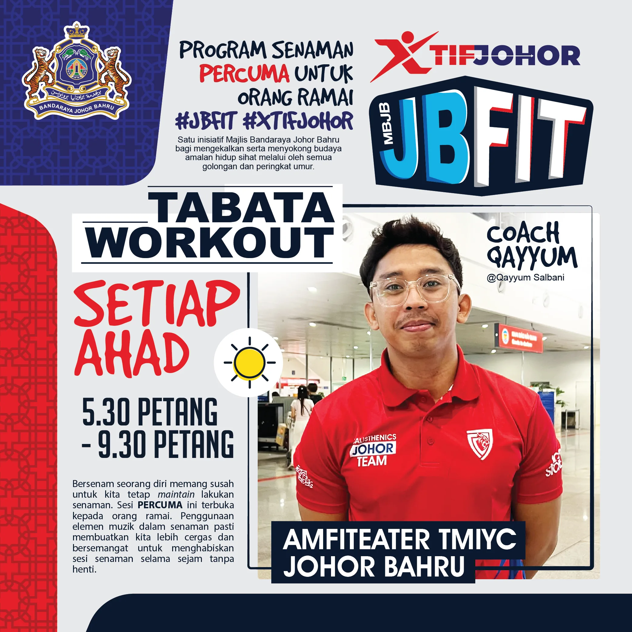 Satu inisiatif Majlis Bandaraya Johor Bahru (MBJB) bagi mengekalkan serta menyokong budaya amalan hidup sihat melalui senaman secara mingguan di taman awam